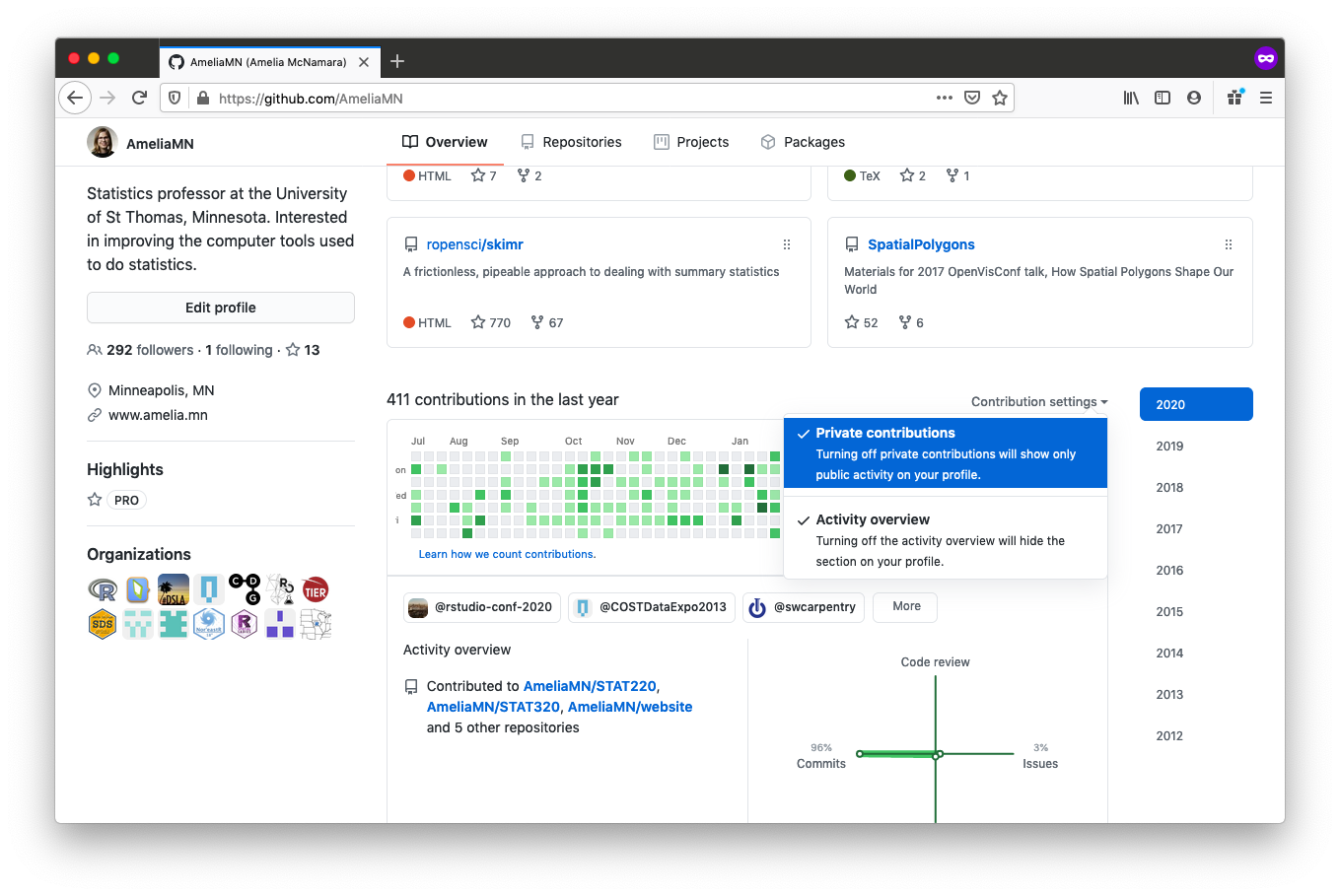 class: title-slide, left, top background-image: url(img/pattern-1477380.png) background-size: 180% background-repeat: repeat background-position: 18% 55% # Scraping, iterating, purring ### Amelia McNamara, PhD ### Assistant Professor of Computer & <br>Information Sciences ### University of St Thomas<br>St Paul, MN [